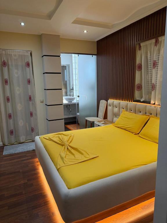 Seahaven Apartment in Saranda offers a spacious layout with two bedrooms, two bathrooms, and a comfortable living room. The apartment includes a fully equipped kitchen with modern appliances, a washing machine, and a dining area.